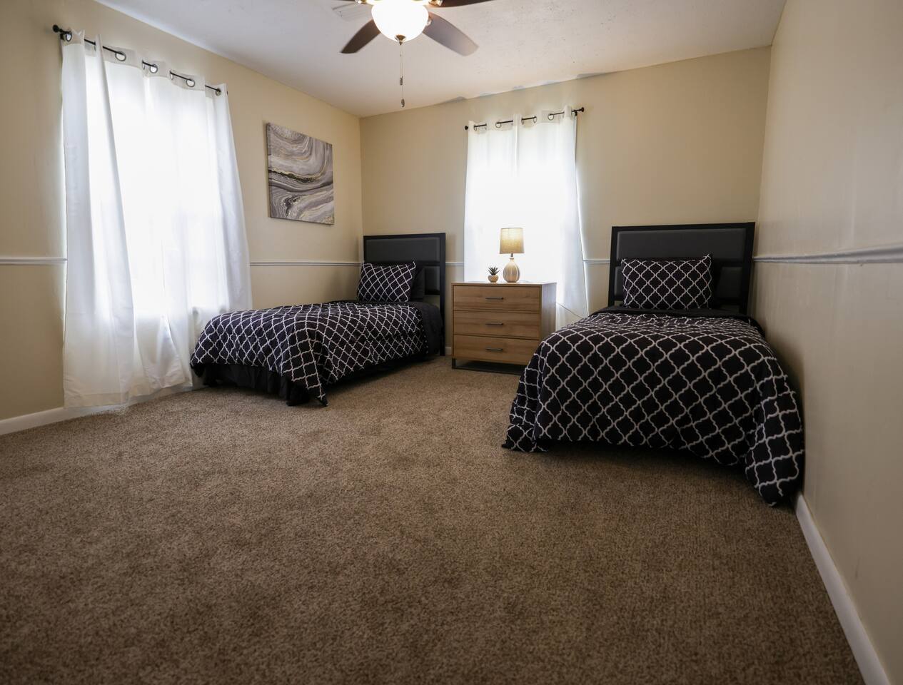 Here’s what awaits you: ✓ High-speed Wifi for all streaming and business needs ✓ Expansive, secluded backyard for privacy and leisure ✓ Dedicated workspace to stay productive ✓ Private driveway parking for seamless arrival ✓ Fully stocked kitchen with oven and top-tier amenities ✓ State-of-the-art Smart TVs for entertainment equipped with Netflix and Cable. ✓ Fully equipped laundry room for your convenience