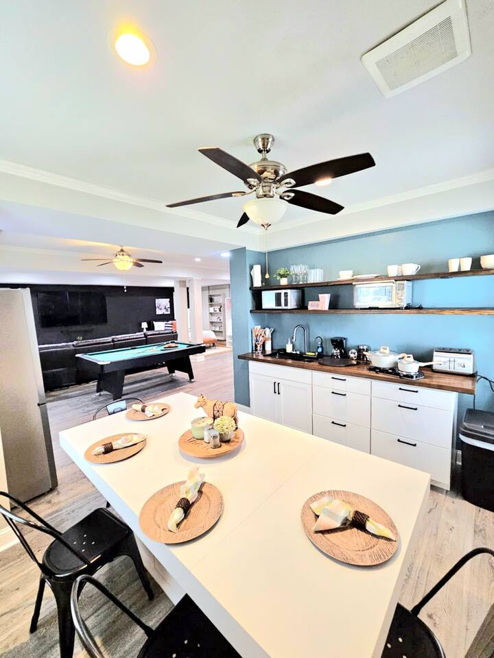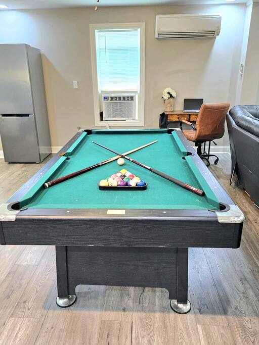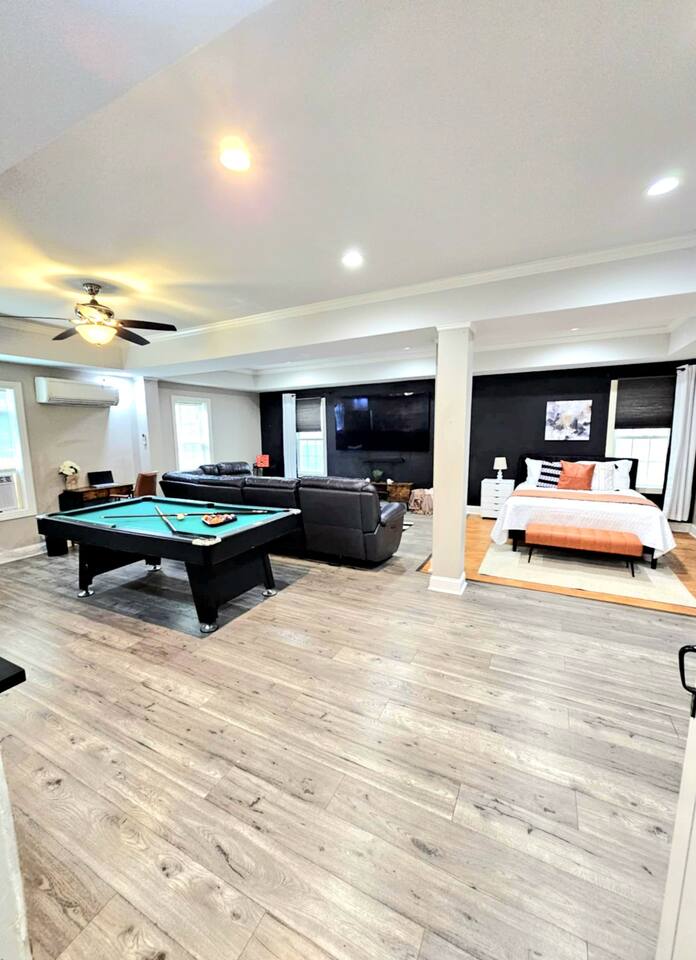 Welcome to your coastal getaway, a chic and spacious studio designed to accommodate up to five guests. Enjoy two comfortable queen beds, including a convenient Murphy bed that easily folds away to create more space. Located less than a block from the beach, you’ll have quick access to the sun, sand, and surf anytime you wish. Inside, the suite features vibrant decor, sleek furnishings, and a pool table for a touch of fun and relaxation. Whether you’re here to soak up the ocean breeze or unwind with family and friends, this stylish retreat offers the perfect mix of comfort, convenience, and coastal charm.